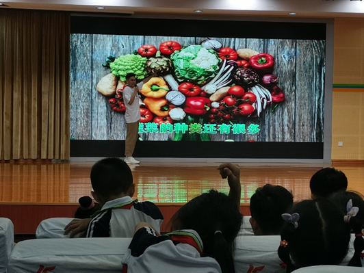 为了进一步响应“全国大学生食品安全与营养中国行”志愿服务活动,beat365在线唯一官网本科第一党支部组建党员志愿服务队,前往海口市第25小学开展“食品安全进校园”活动,带领一年级小学生认识蔬菜、水果和杂粮,向小学生讲授食品营养健康知识。