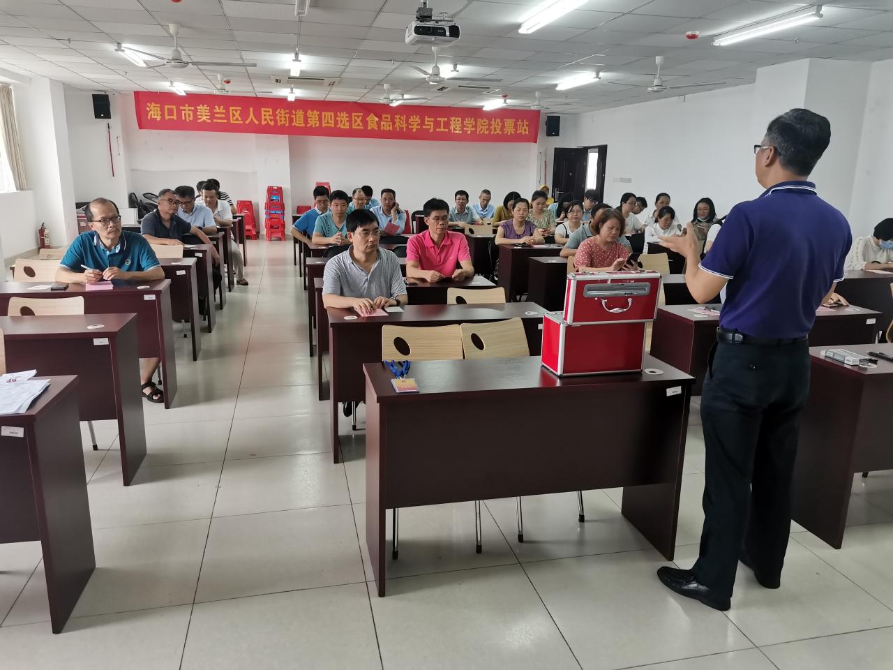 2021年10月15日上午9时,根据海口市美兰区人大换届选举工作要求,人民街道第四选区beat365在线唯一官网投票站正式开始组织换届选举投票工作。学院全体有投票权的教职工参会。