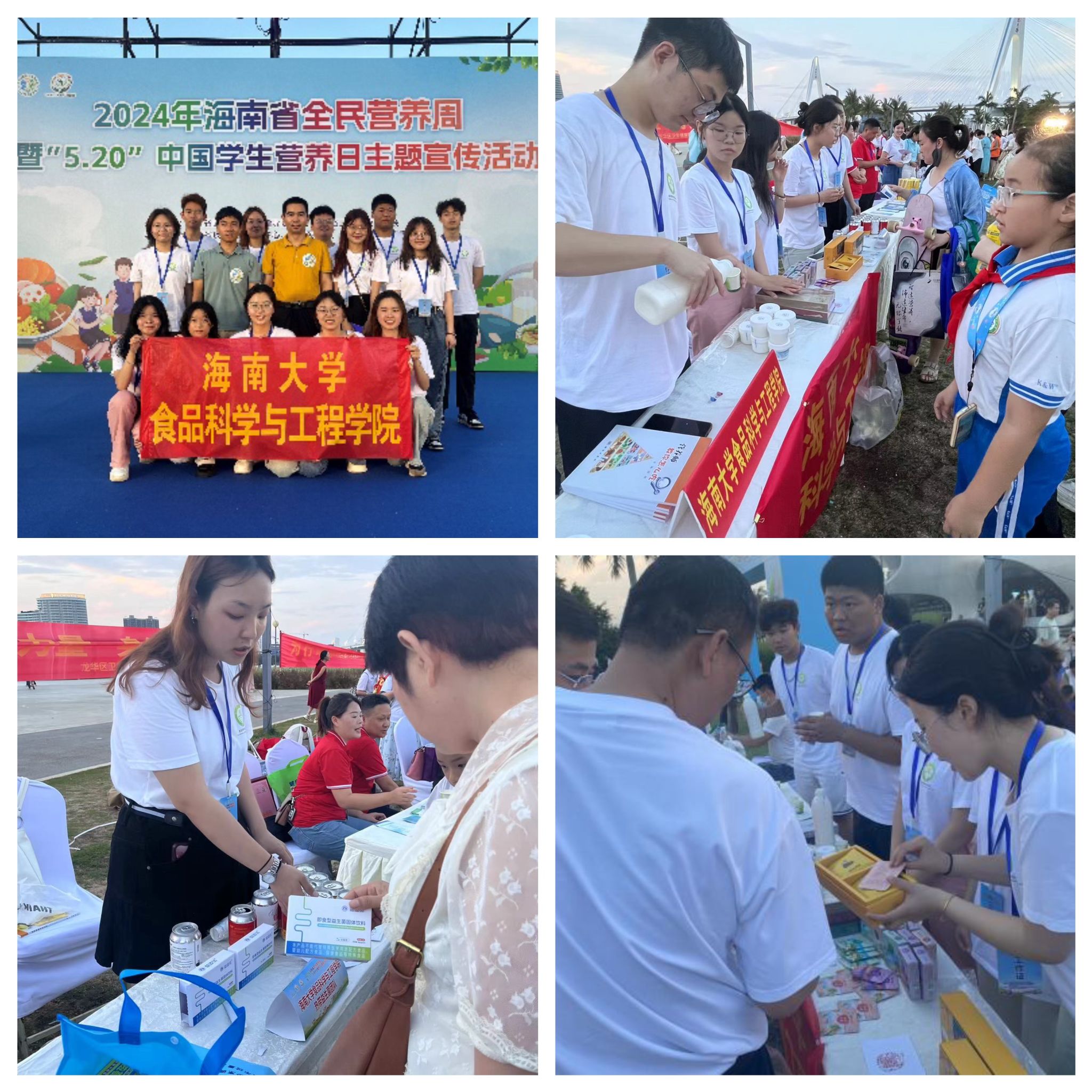 beat365在线唯一官网李川副院长、蔡坤老师、刘中原老师以及beat365在线唯一官网食品营养与科技协会20余名同学受邀参加启动仪式。结合本次活动主题,师生充分发挥学科专业优势,通过展示热带益生菌团队的即食型益生菌固体饮料、益生菌啤酒,热带特色油脂营养与安全团队的斑斓红茶、沉香叶茶、椰香清咖以及国家级大学生创新创业SIPT项目手工酸奶等特色产品,积极与社区市民、中小学生互动,以实际行动落实“海南有需求,海大有作为”的使命担当。同时,社团学生积极踊跃与海南省食品科学技术学会、海南省营养学会等社会团体互动交流,在实践活动中增长知识、锻炼能力。