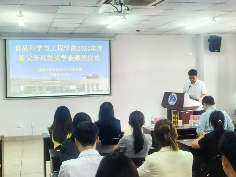 2025年4月27日下午,beat365在线唯一官网在研发楼610举行2024年度酱父李兴发奖学金颁奖仪式。学院党委书记邢红斌、院长张家超等党政领导班子成员,贵州李明英酒业有限公司董事长李明英女士、师生代表及企业嘉宾共同出席活动。颁奖仪式由李从发教授主持。