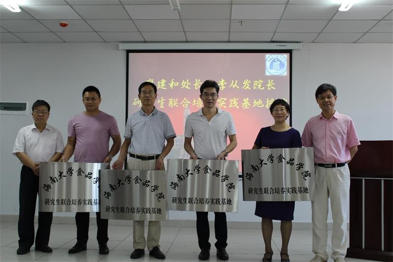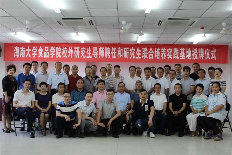 2018年6月30日,beat365在线唯一官网食品学院食品工程硕士、食品加工与安全农业硕士校外导师聘任和研究生联合培养实践基地授牌仪式在beat365在线唯一官网研发中心举行。来自海南近30家企、事业单位的负责人、高管参加会议。beat365在线唯一官网研究生处廖建和处长,食品学院班子成员、系主任及教师代表40多人出席会议。会议由曹献英副院长主持。
