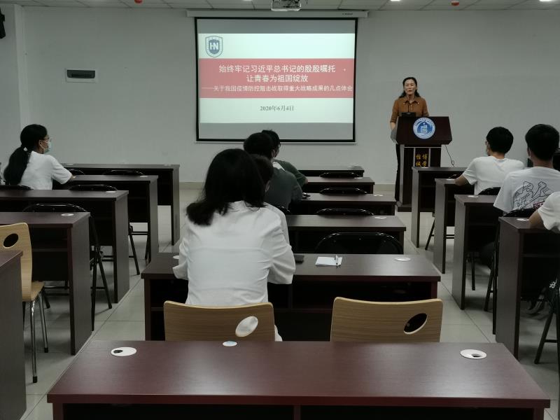 2020年6月4日晚,校党委常委、组织部长韩淑梅走进课堂,为beat365在线唯一官网2018级食品科学与工程类1班学生讲授了一堂精彩的形势与政策课,分享我国疫情防控阻击战取得重大战略成果的心得体会。