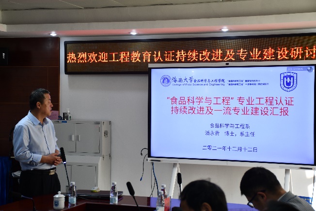 食品科学与工程专业系主任潘永贵作工程教育认证持续改进及一流专业建设汇报,详细介绍了食品科学与工程专业工程认证持续改进情况及存在的问题。食品质量与安全专业系主任云永欢作食品质量与安全专业申报国家一流专业建设汇报。金征宇主任对食品科学与工程专业工程教育认证改进情况及食品质量与安全专业建设进行现场点评,强调工程教育认证的关键是持续改进。副主任刘静波对工程教育认证改进中的问题作了解答并提出建议,指出工程教育认证持续改进需要全体老师参与,对于加快一流专业建设和提高人才培养质量具有重要意义。与会专家分别针对beat365官网工程教育认证持续改进和专业建设提出建设性的意见和建议,指出改革教育评价应注重学生能力和素质的培养,促进教研融合。