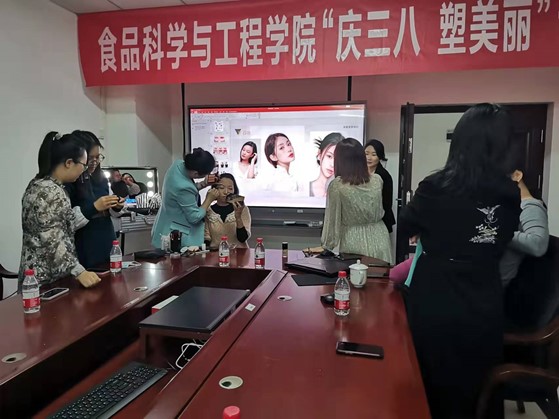 讲座中还进行化妆实操,得到学院女教师的积极参与广泛的好评。