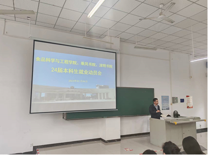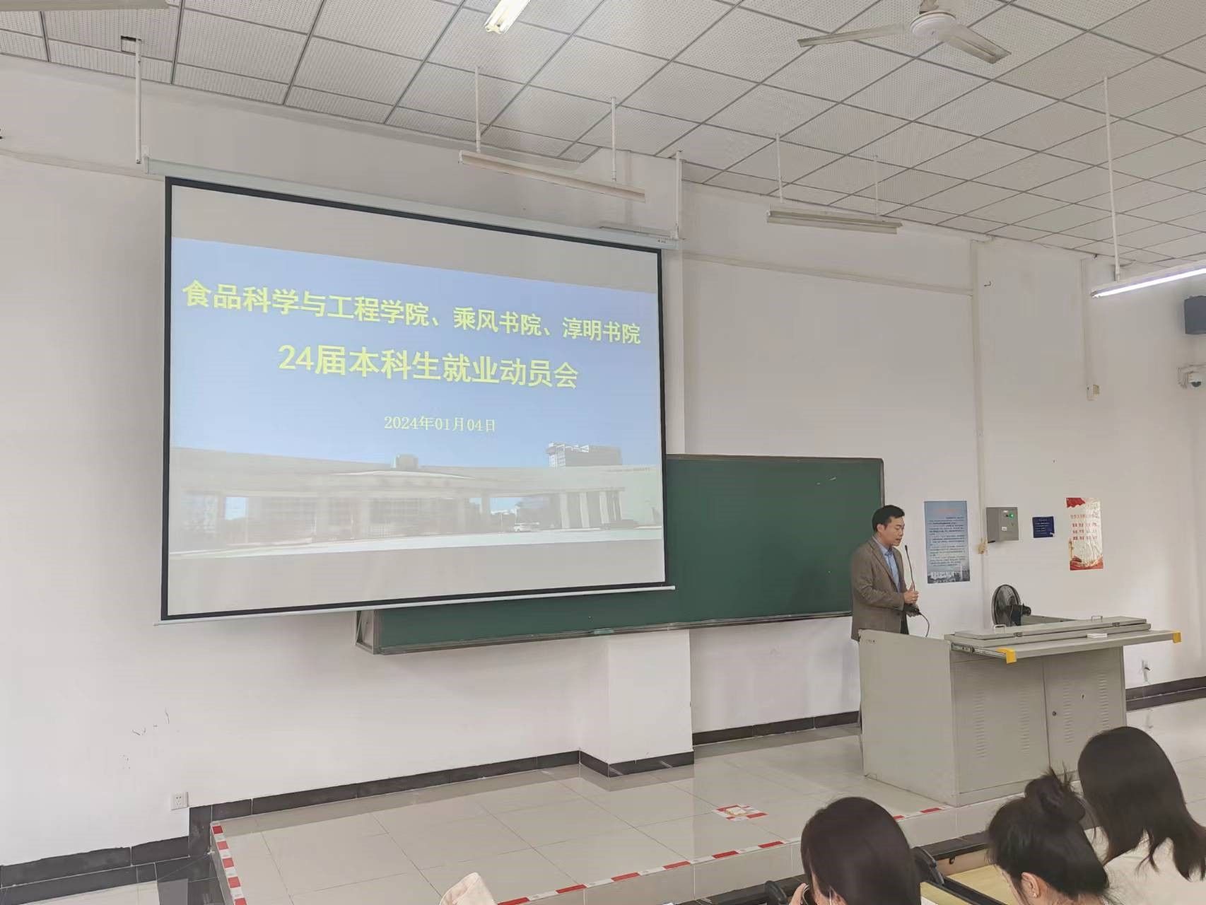 2024年1月4日上午在5教312,beat365在线唯一官网、乘风书院、淳明书院联合举行2024届食品本科生毕业就业动员会。帮助毕业生梳理毕业事宜,了解毕业生就业意愿,针对性地开展毕业就业教育,更好地为毕业生就业保驾护航。出席会议的有:乘风书院黄小欧书记、淳明书院周郭军书记、beat365在线唯一官网邓秀成书记、陈文学副院长、李川副院长、系主任、毕业班班主任、辅导员以及食品专业全体本科毕业生。会议由beat365在线唯一官网食品质量与安全系主任云永欢主持。